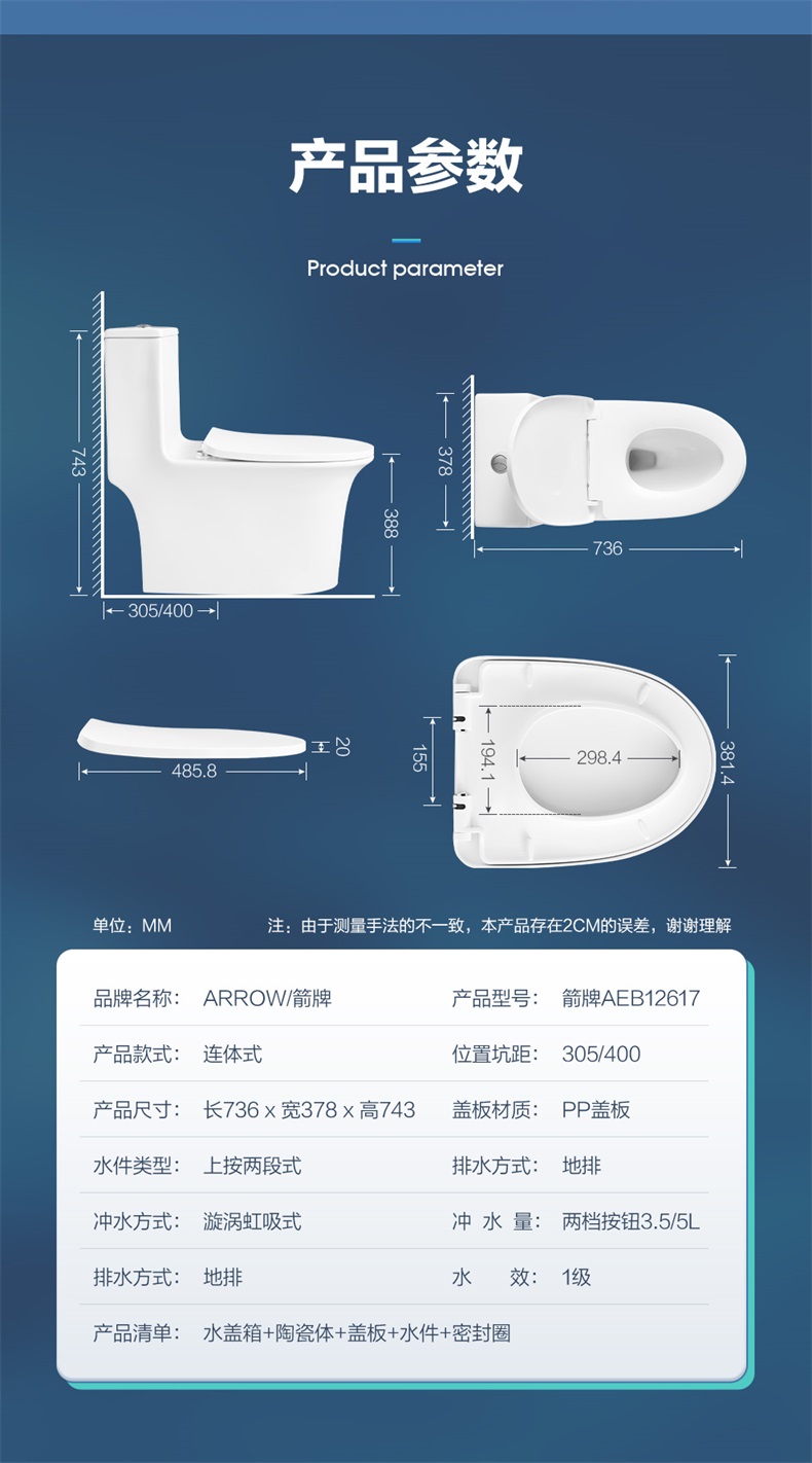 箭牌卫浴马桶大冲力小户型家用卫生间防溅防臭抽水节水坐便器连体 ¥2688.00 0人关注