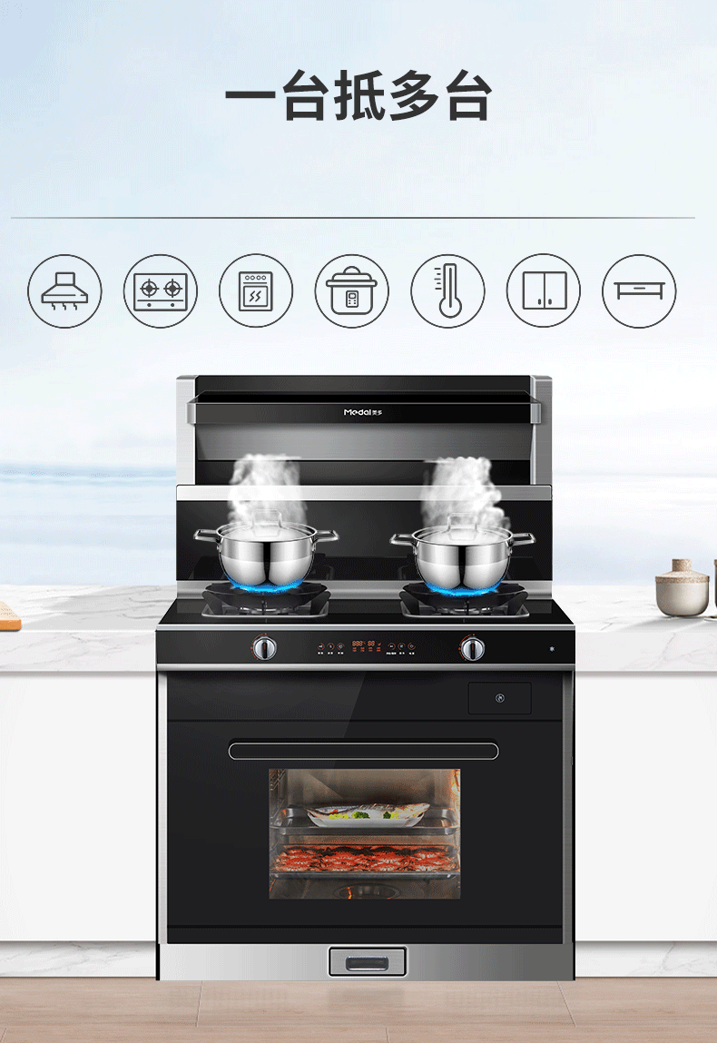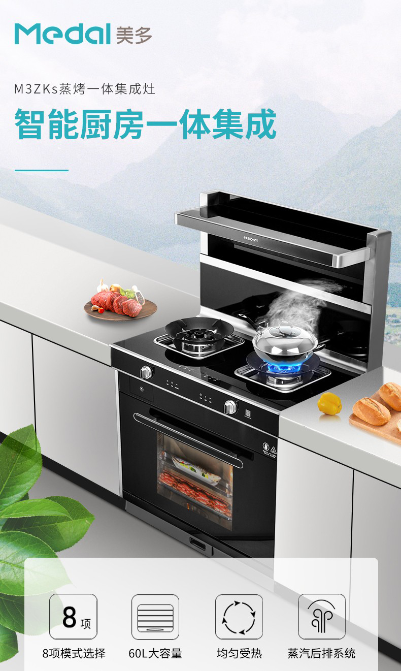 美多(medal)M3S语音款 蒸烤一体集成灶智能语音控制5.0KW大火力置物台油烟机燃气灶蒸烤套装 ¥9580.00 热销0件