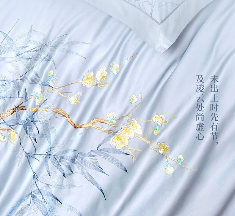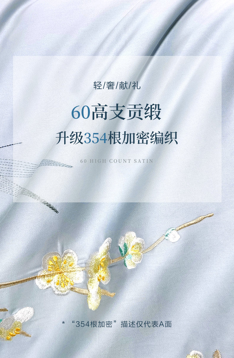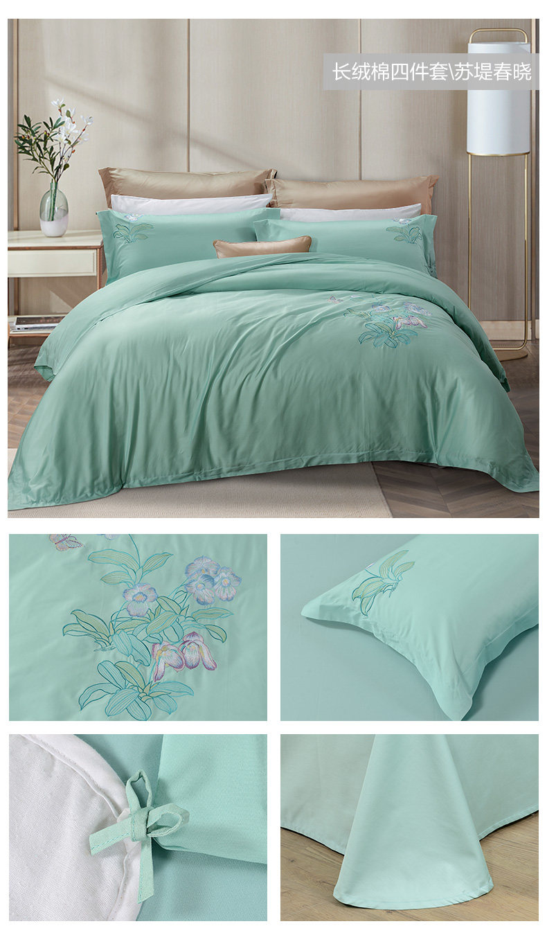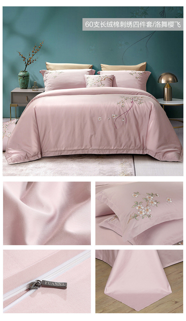 富安娜家纺 60支长绒棉贡缎四件套简约绣花撸猫感床笠款2022春新品 适用1.8m床 搭配230*2 ¥779.00 热销0件