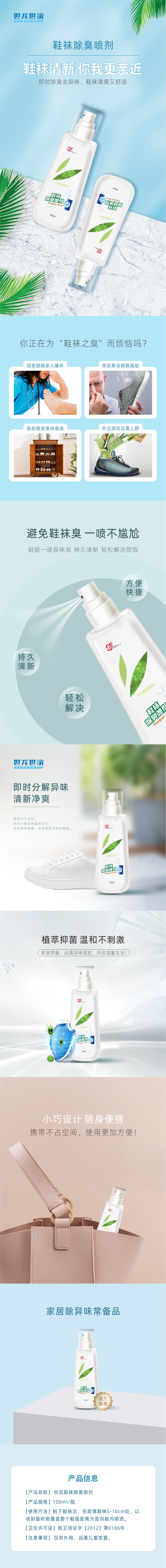 世龙世家 鞋袜除臭喷剂100ml 两瓶装除异味喷雾去脚臭抗菌喷剂 ¥100.00 0人关注