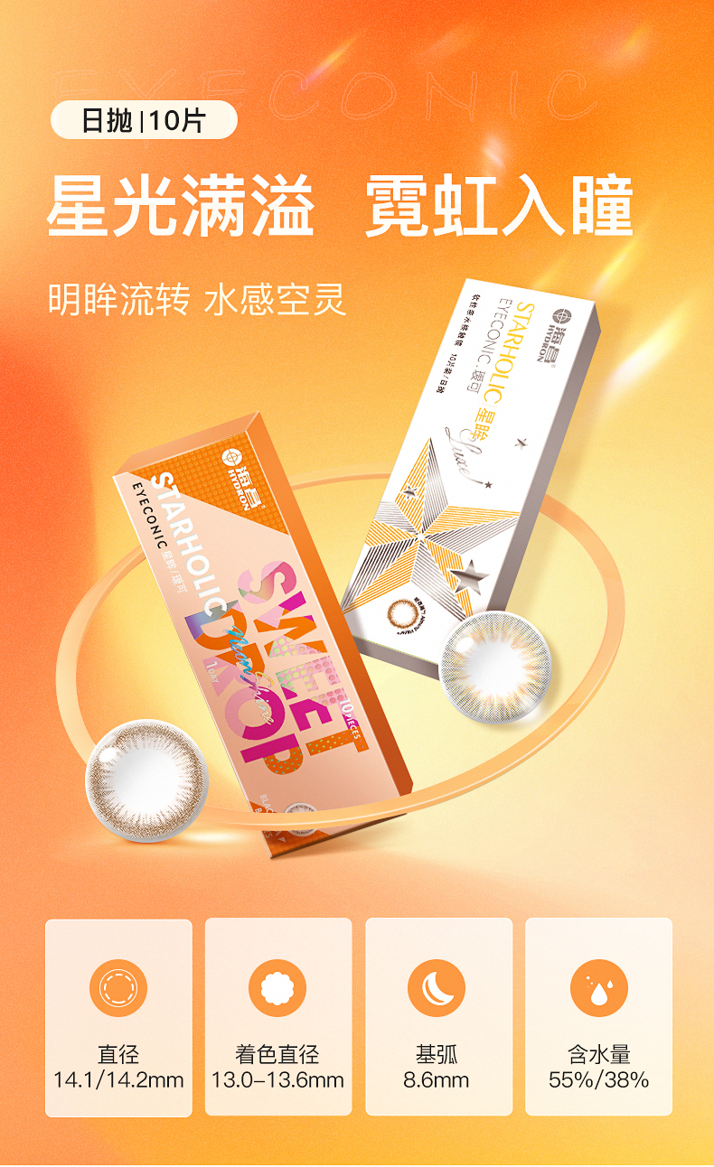 海昌星眸霓虹隐形近视眼镜美瞳日抛女10片 ¥218.00 热销0件