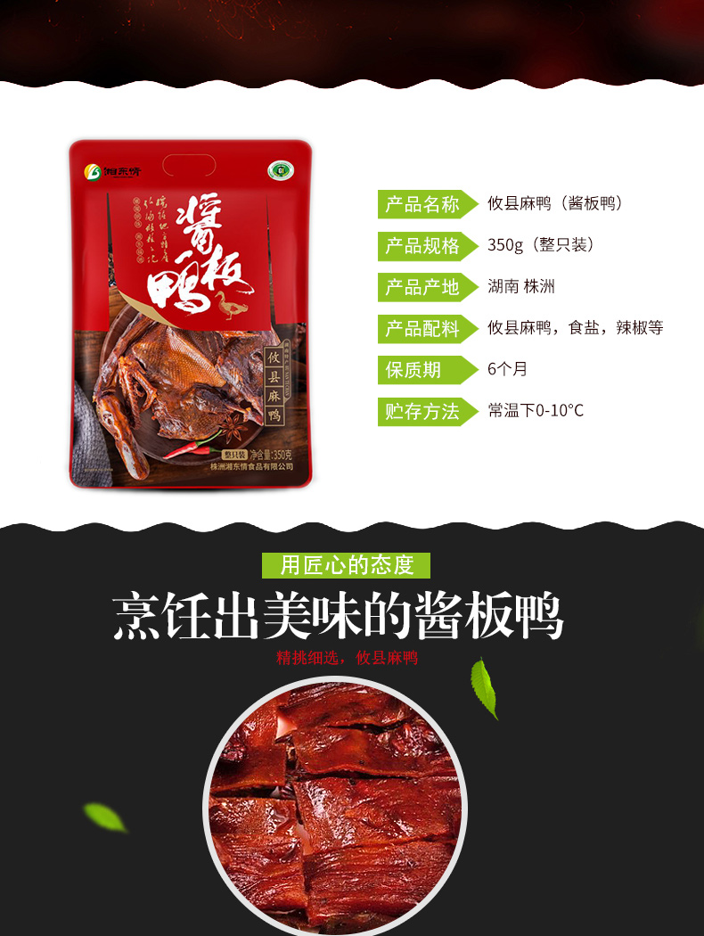 攸县麻鸭 酱板鸭 整只 地理标志保护产品