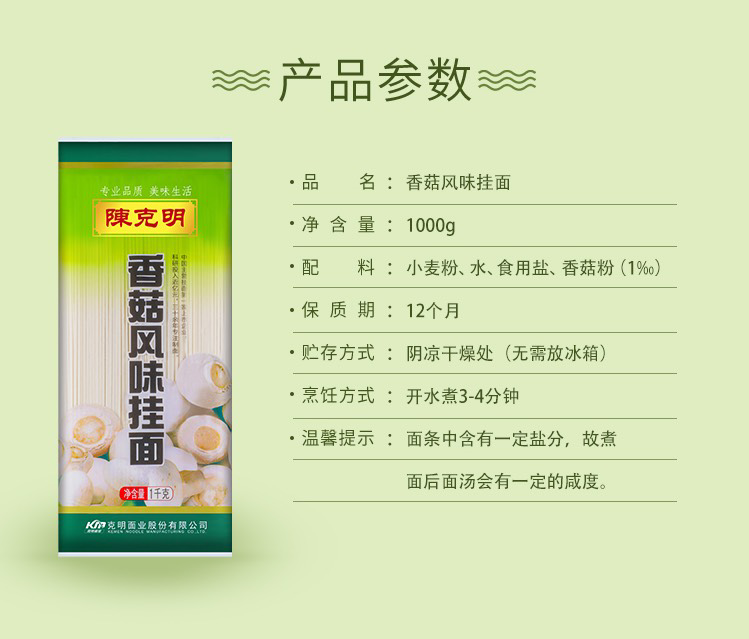 陈克明 香菇风味挂面 1kg/包 ¥9.99 0人关注