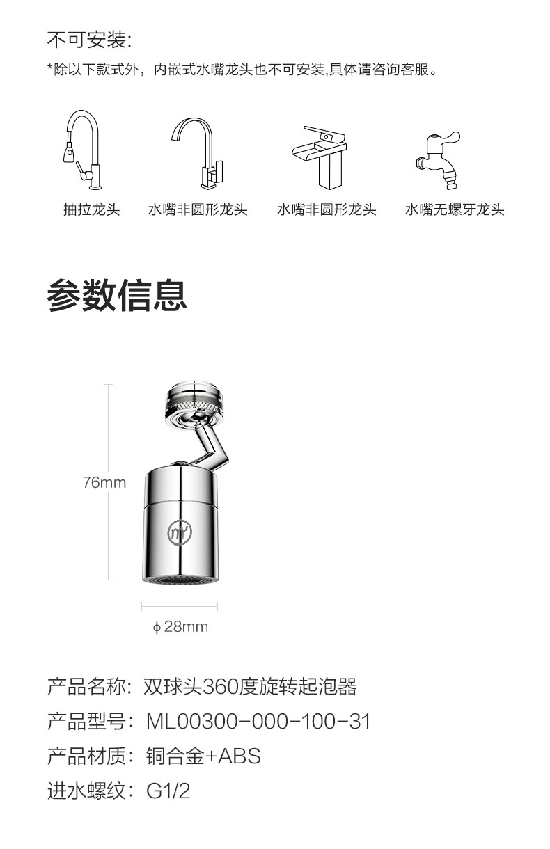 九牧小牧优品水龙头防溅神器厨房多功能起泡器洗菜盆面盆万向旋转 ¥49.00 0人关注