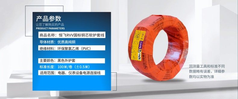 恒飞电缆 RVV软护套电缆 2 3 4芯*1.5 2.5 4平方 防水电缆 国标线 ¥145.00 0人关注