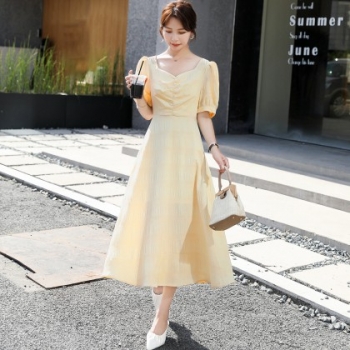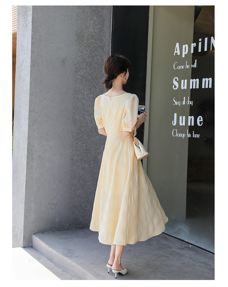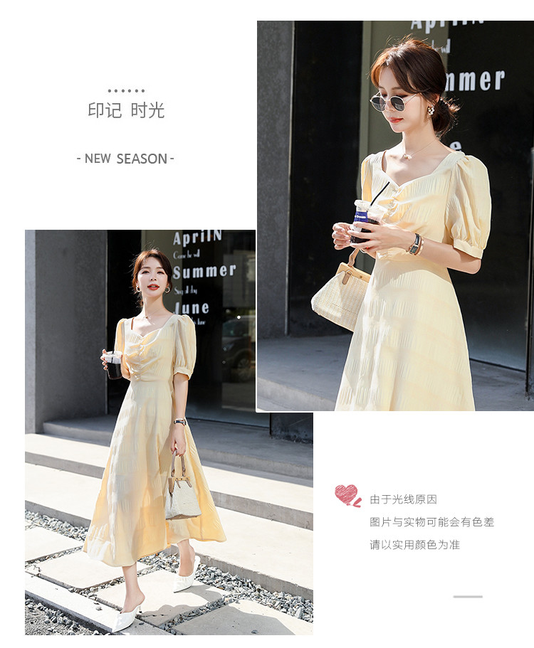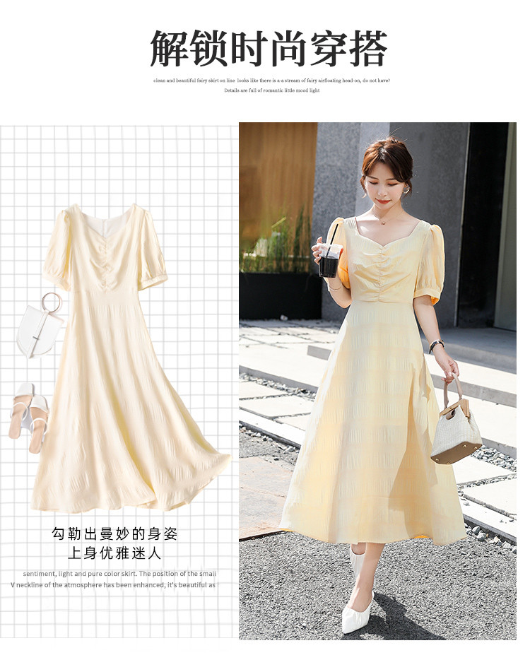 连衣裙女夏装2022新款气质方领修身显瘦短袖中长款女士裙子(米黄色) ¥128.00 热销0件
