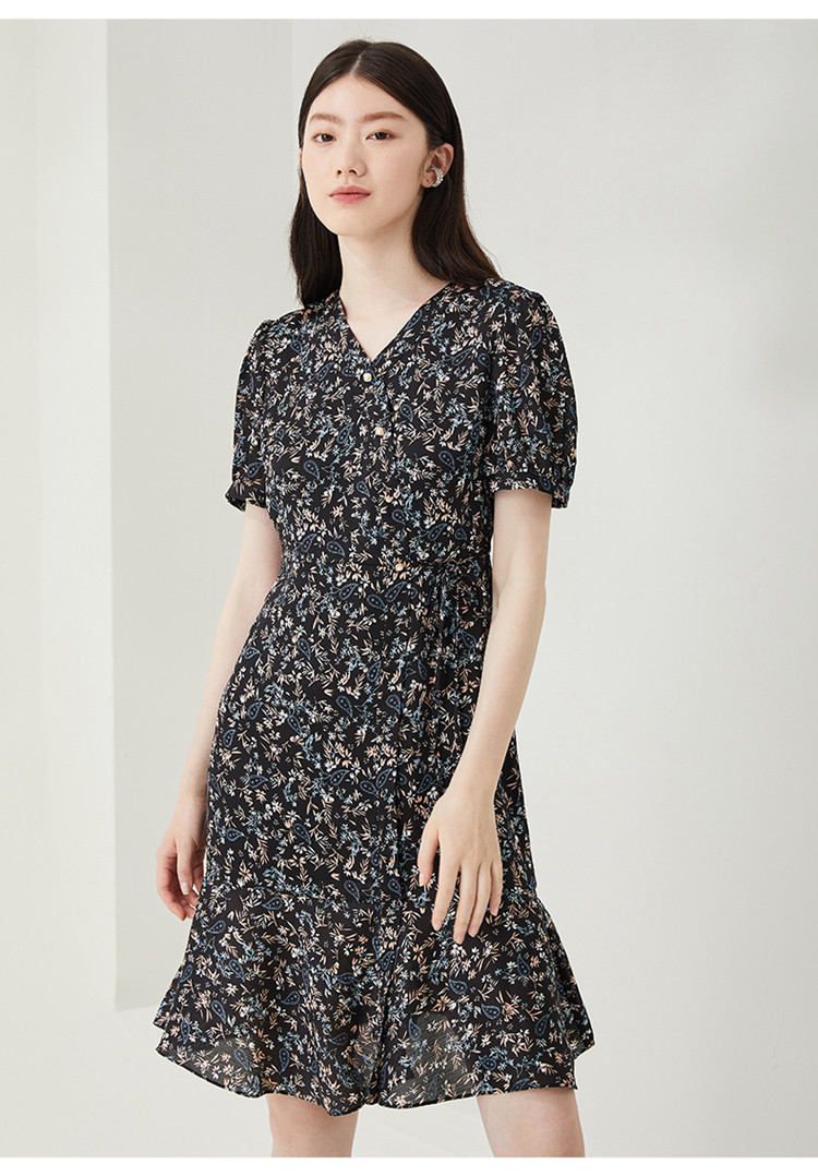 裙子女裙夏季甜美V领收腰荷叶边碎花连衣裙 ¥217.00 热销0件