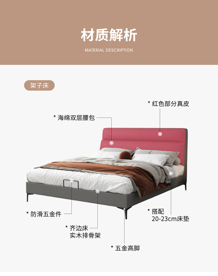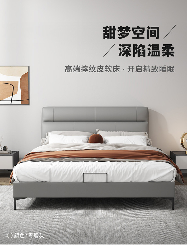 皮床轻奢双人床简约现代大床意式极简主卧婚床(烟青灰/莫兰迪蓝) ¥2199.00 0人关注