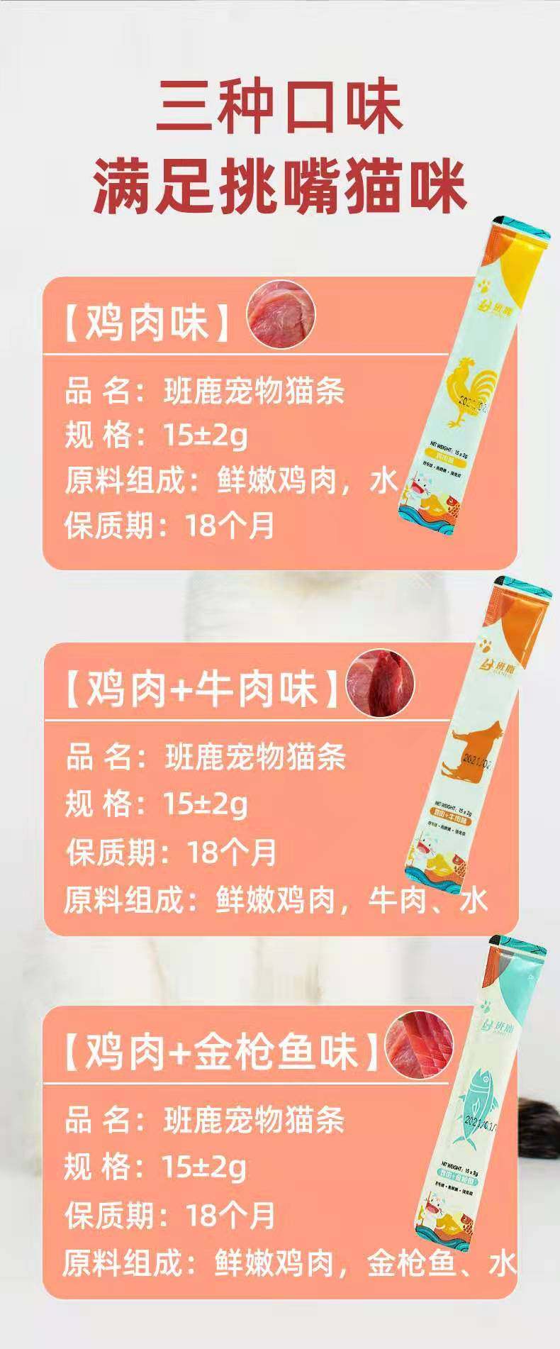 班鹿宠物猫零食用品猫条罐头湿流粮成幼孕猫营养补钙专用增肥发腮 ¥12.00 0人关注