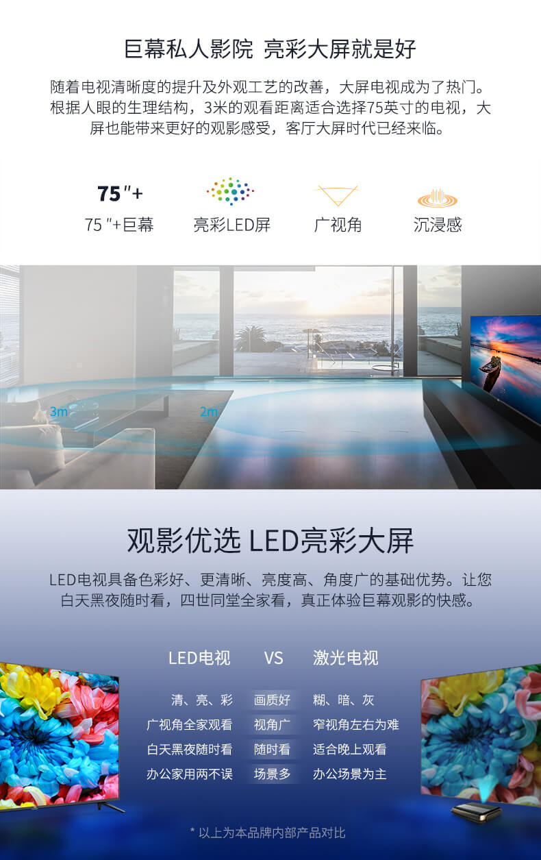 TCL 75V2 75英寸 4K超高清电视 全景全面屏杜比+DTS双解码 ¥3799.00 热销0件