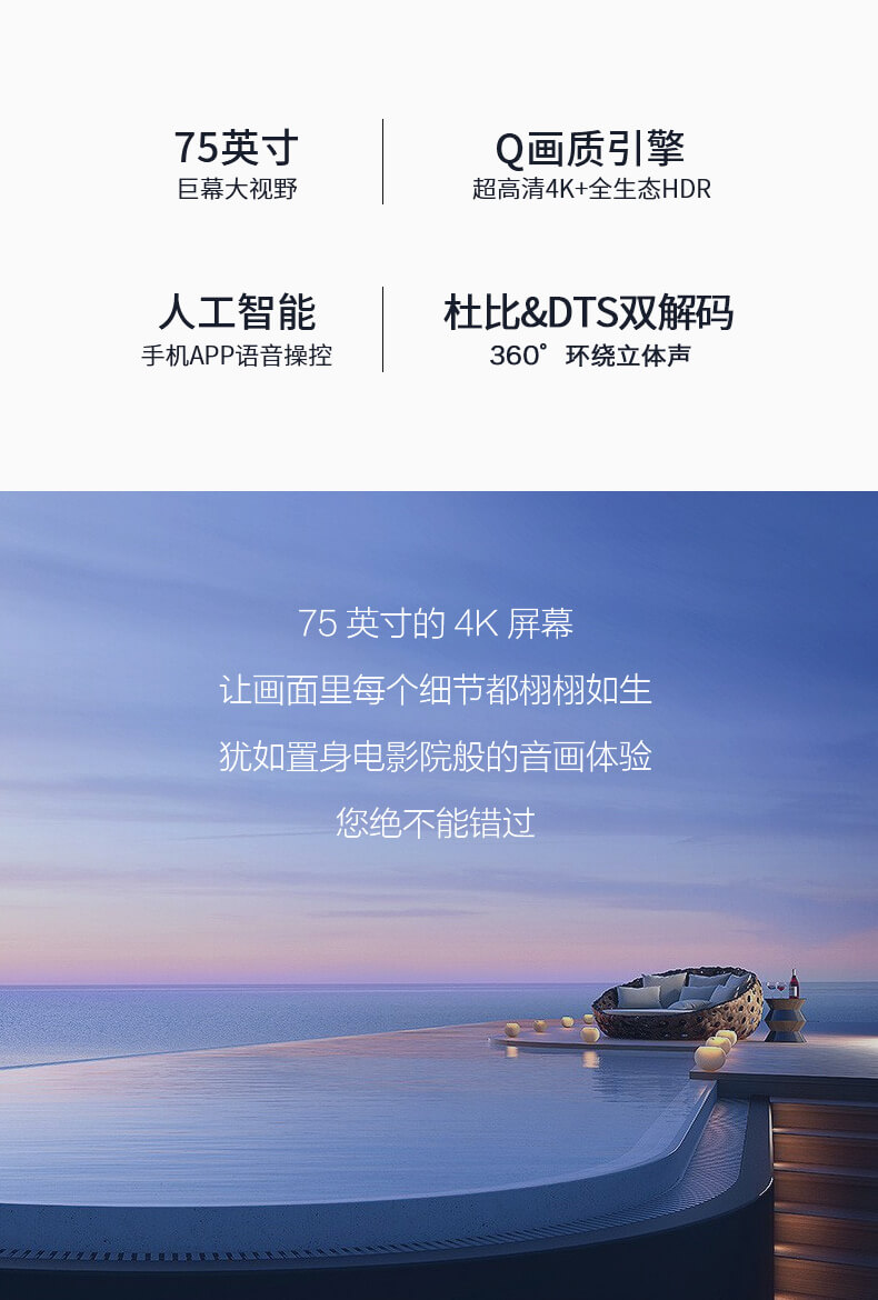 TCL 75V2 75英寸 4K超高清电视 全景全面屏杜比+DTS双解码 ¥3799.00 0人关注