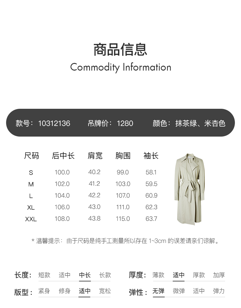 艾诺丝雅诗2022春新款简约宽松直筒翻领收腰风衣外套温柔10312136 ¥878.00 热销0件