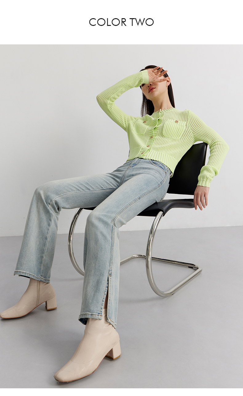 艾诺丝雅诗2022春新款浅色高腰微喇叭牛仔裤不规则毛边10313236 ¥548.00 热销0件
