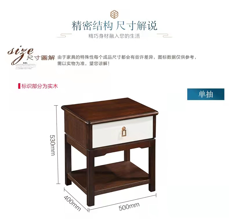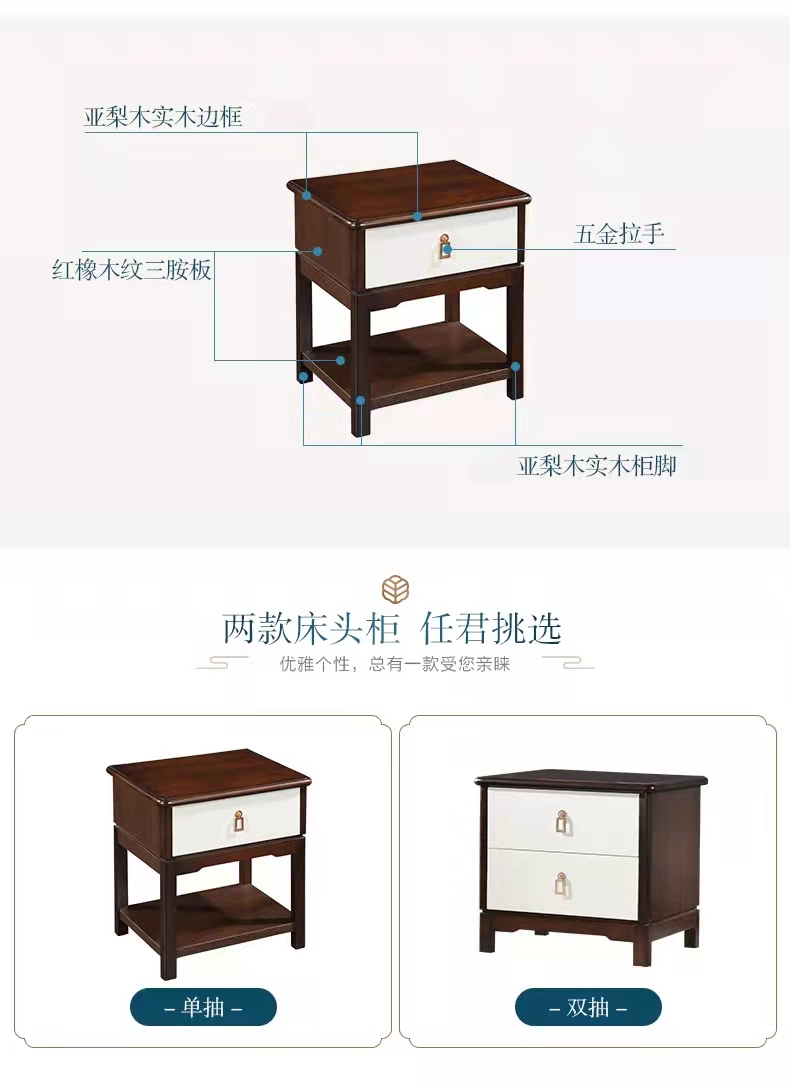 a家家具 中式实木床头柜主卧室边柜双抽储物柜置物柜床边柜 单抽 ¥889.00 热销0件