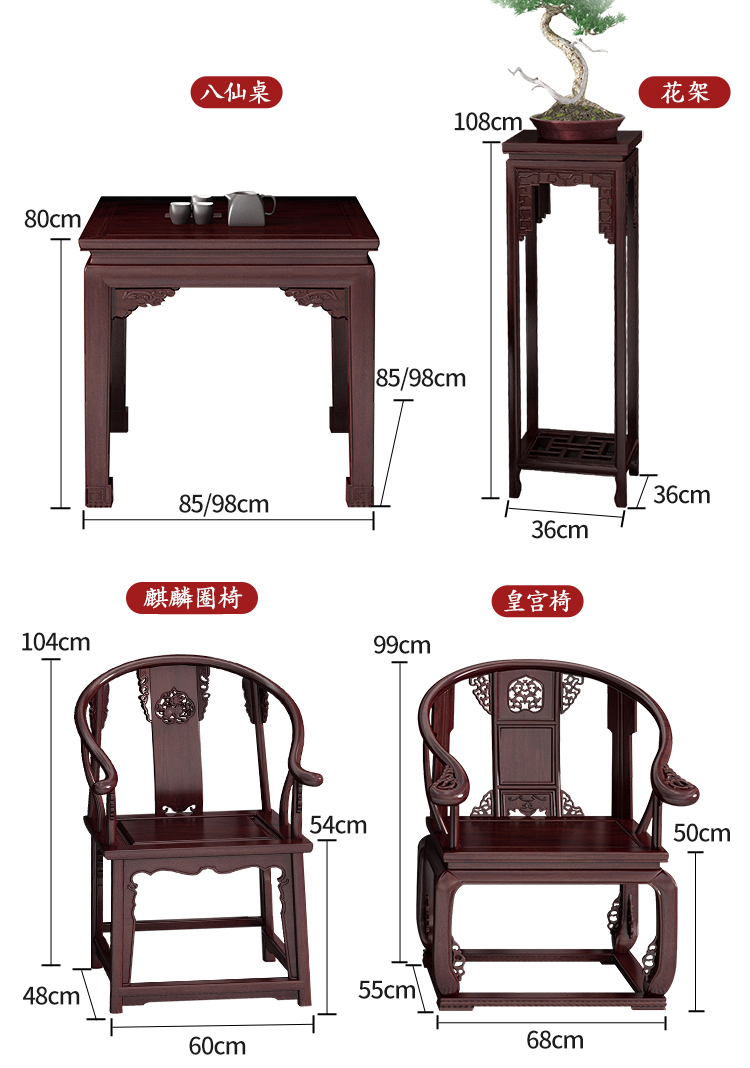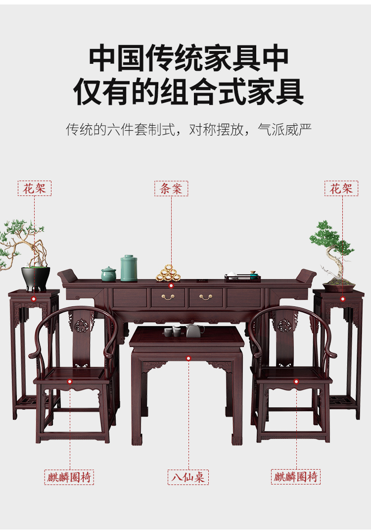 整套 条案+八仙桌+椅子*2+花桌*2