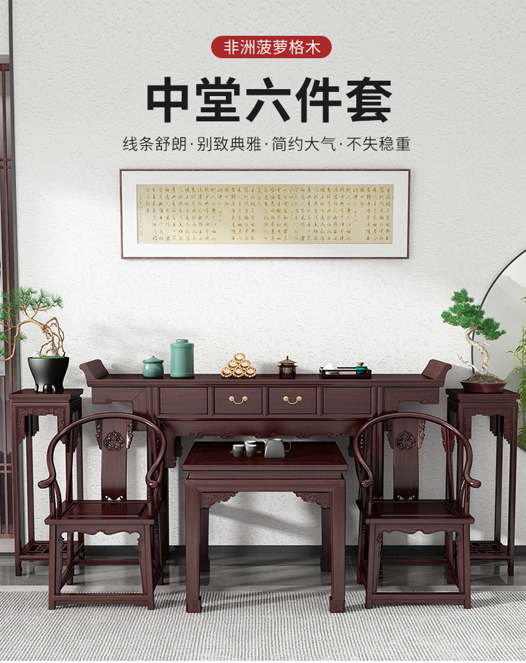中堂六件套实木中式佛台农村堂屋八仙桌供桌条案灵芝四件套贡台桌 条案+八仙桌+椅子*2+花桌*2 ¥18800.00 热销0件