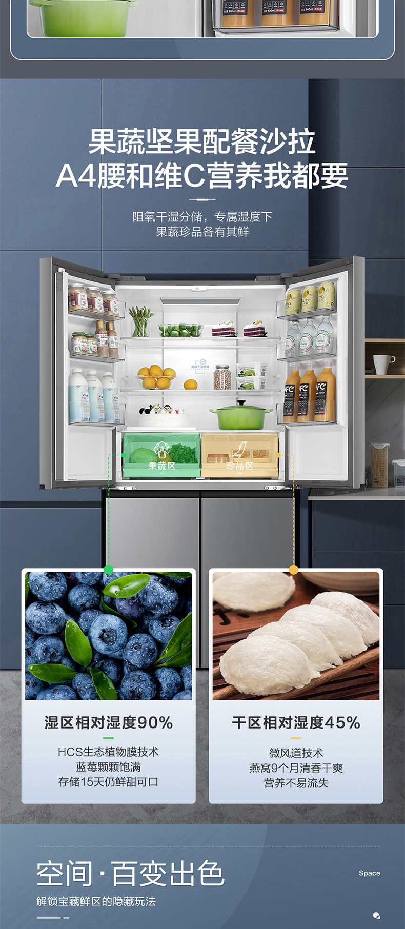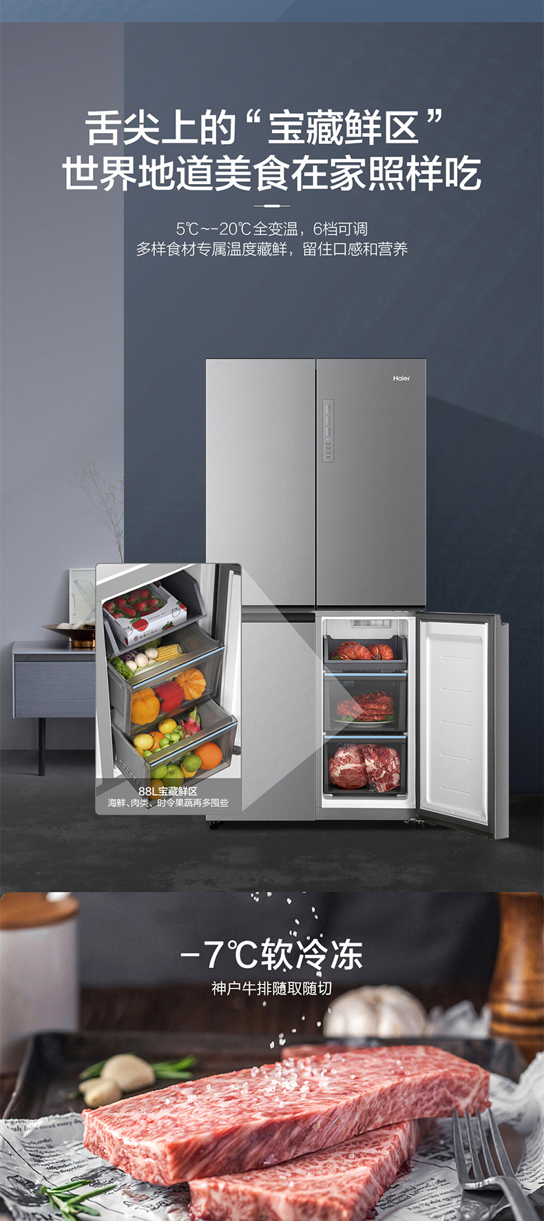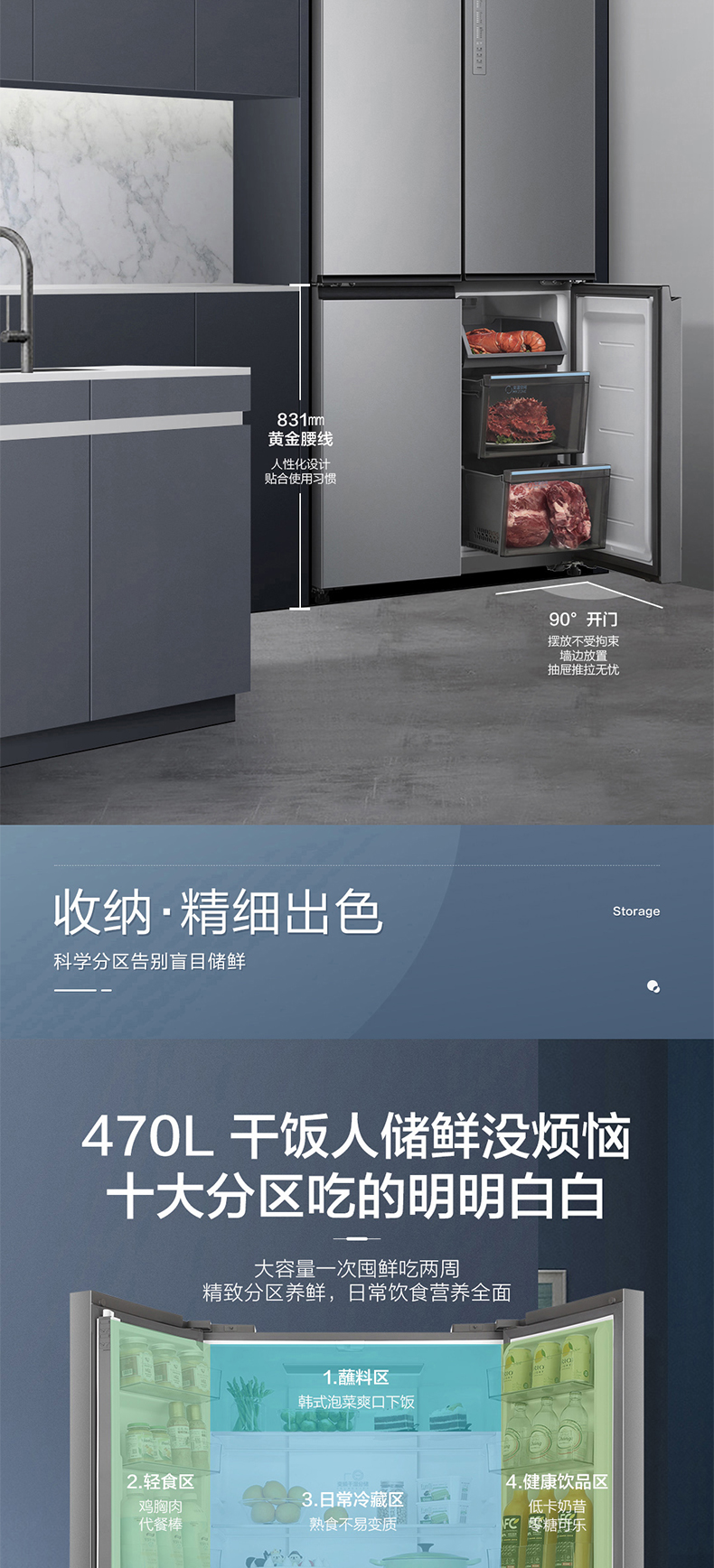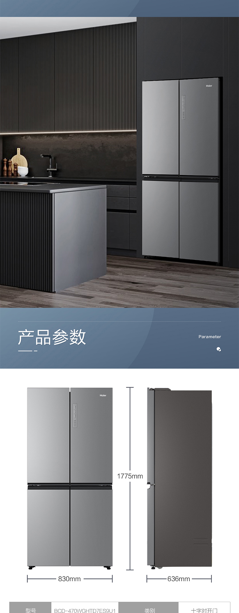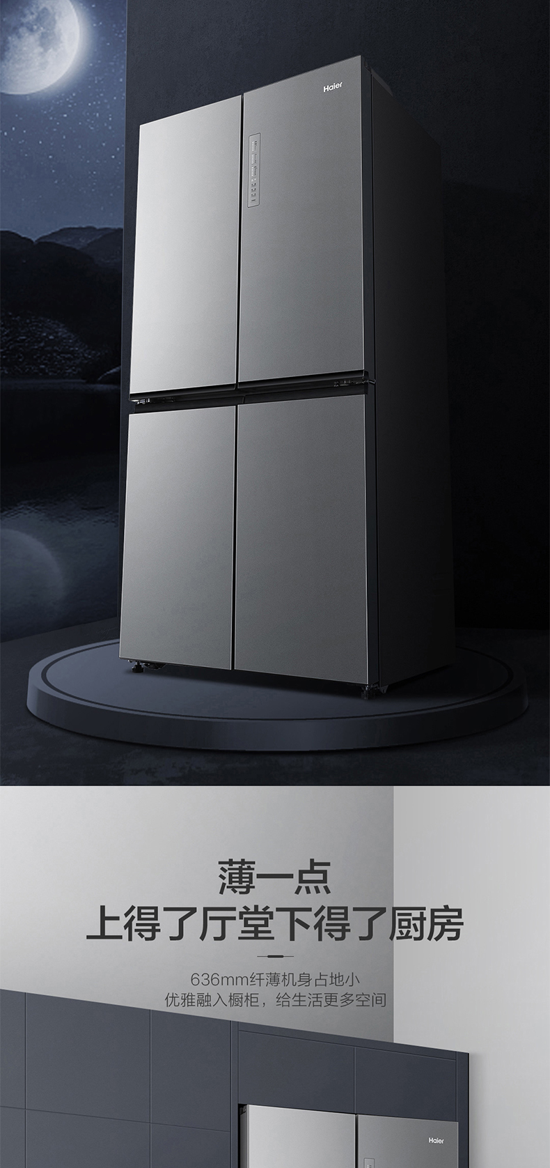 海尔470L新款大容量十字对开门四门节能超薄嵌入一级变频家用冰箱 ¥5699.00 热销0件