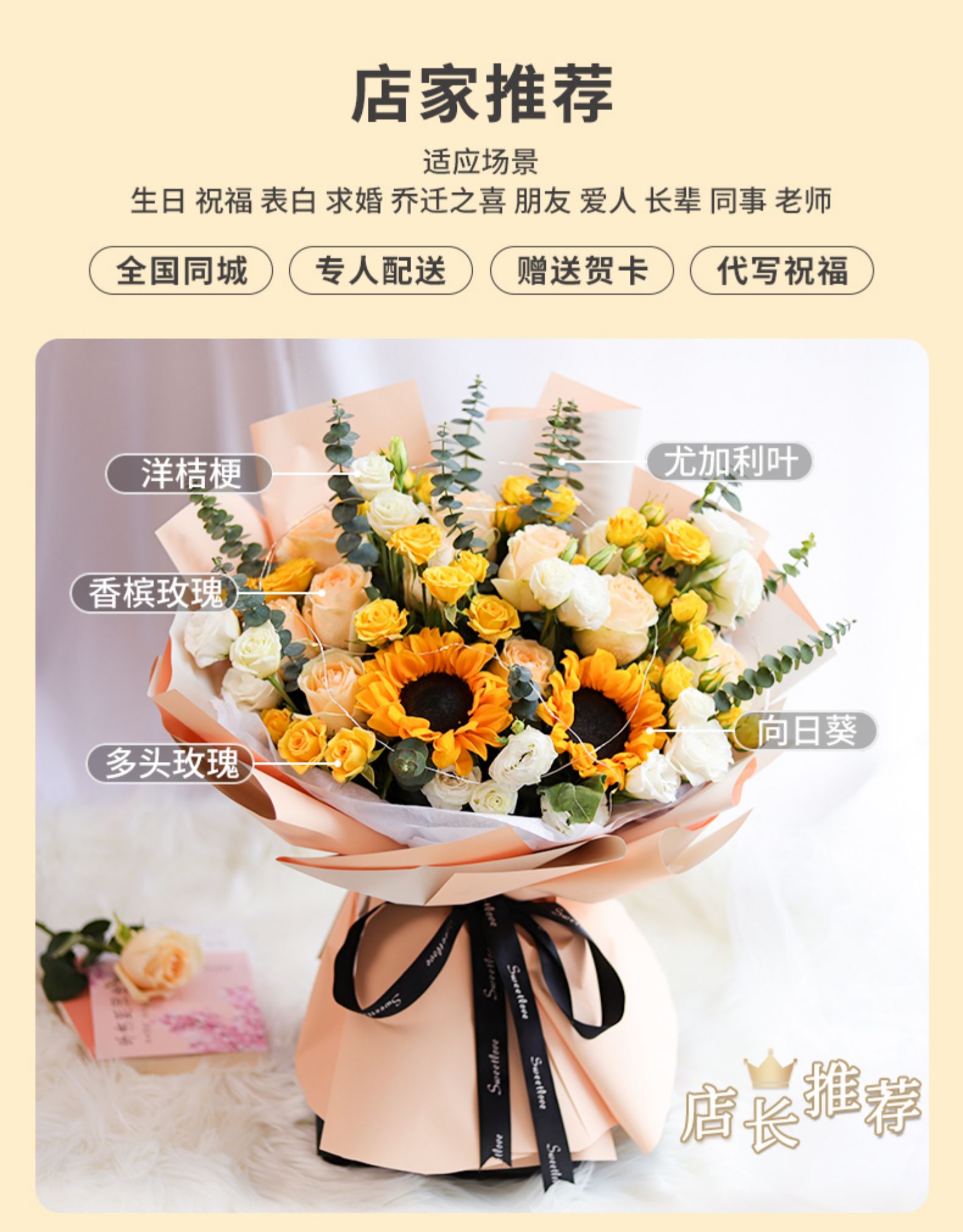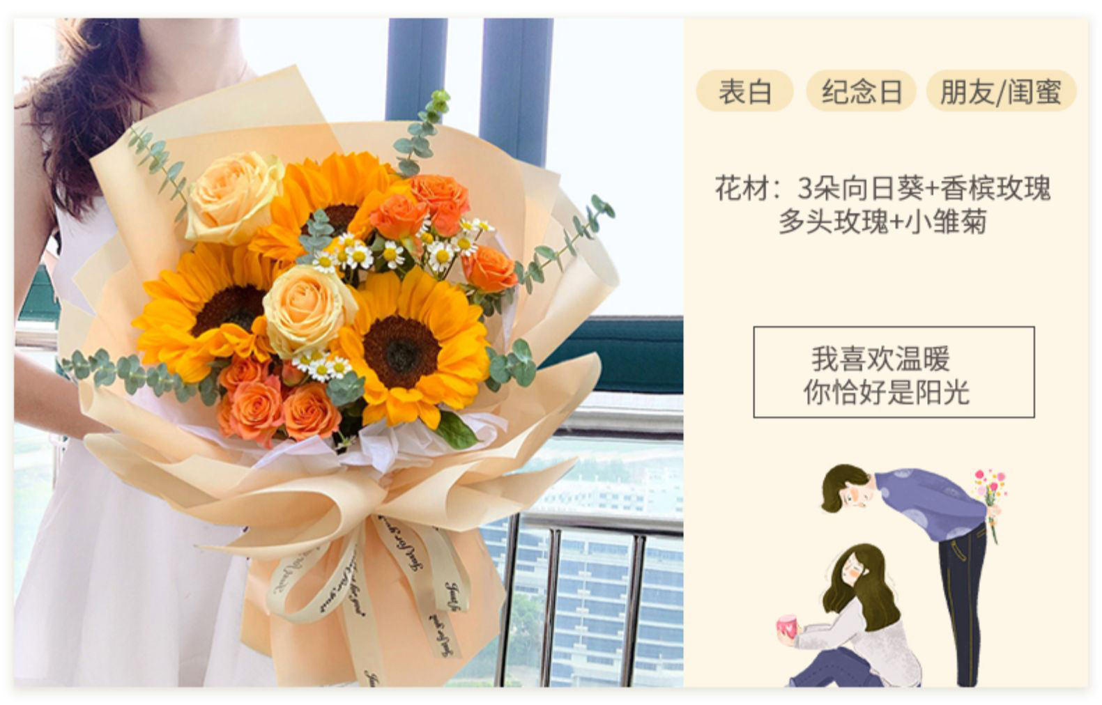 向日葵玫瑰花束 表白 纪念日 朋友 闺蜜 ¥88.00 热销0件