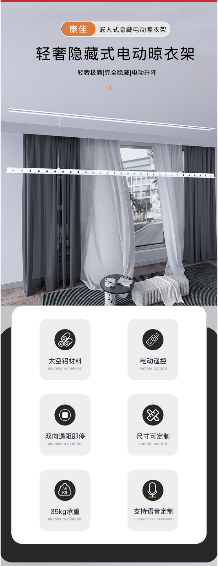 康佳(KONKA)超薄隐形电动晾衣架全隐藏吊顶阳台家用隐藏嵌入式升降智能晾衣杆可定制 ¥2599.00 热销0件