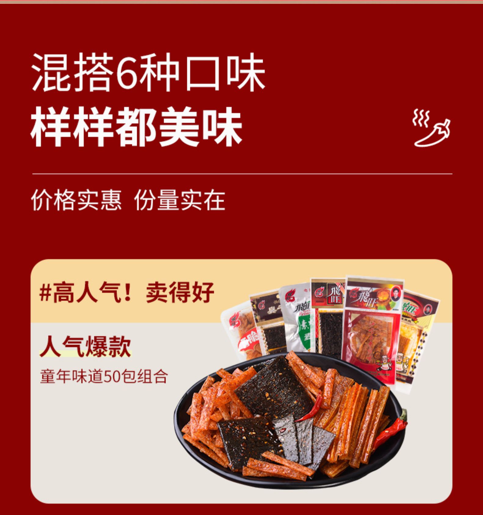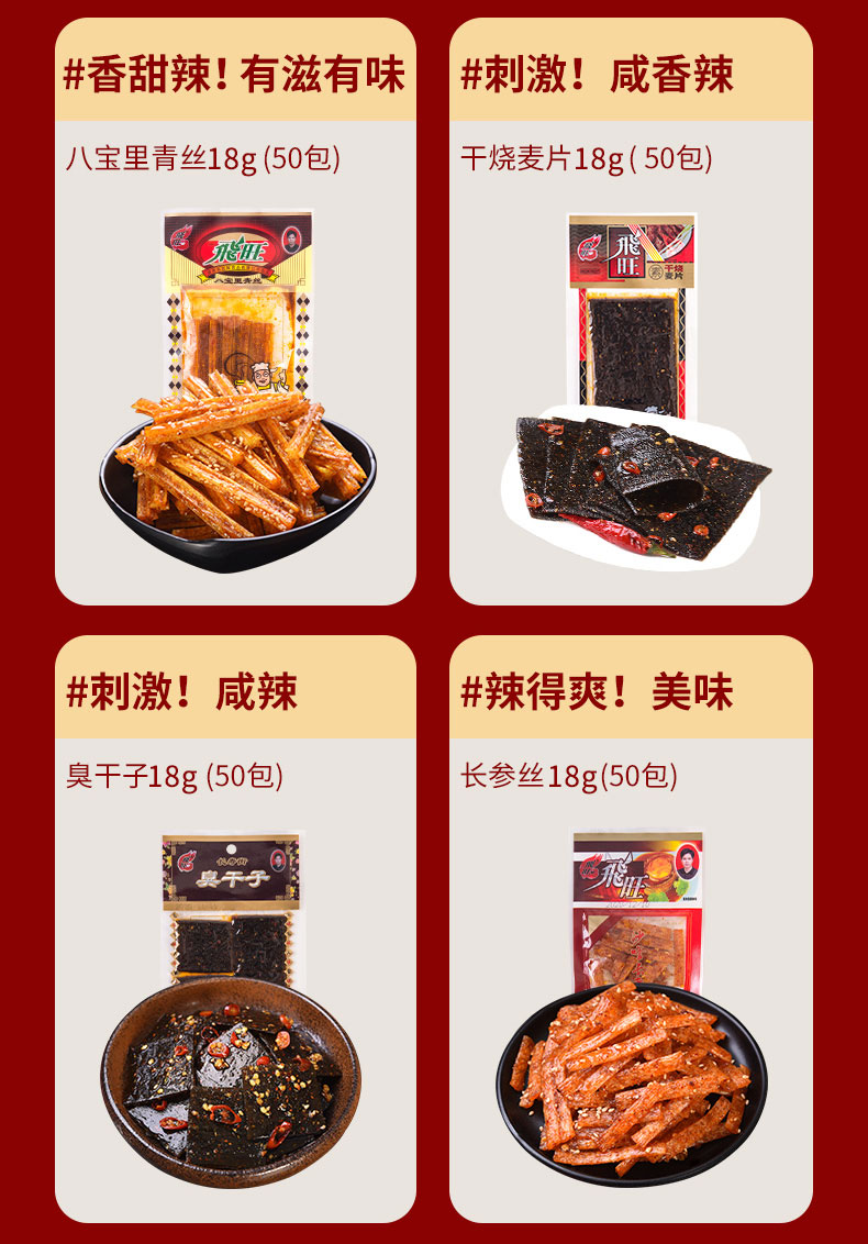 飞旺辣条大礼包麻辣零食儿时臭干子童年怀旧辣片8090后香辣小零食 ¥29.90 热销0件