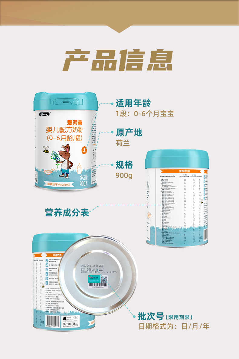 【新装升级】Ekobaby爱荷美荷兰原装进口婴幼儿配方奶粉 1段 0-6个月 ¥368.00 0人关注