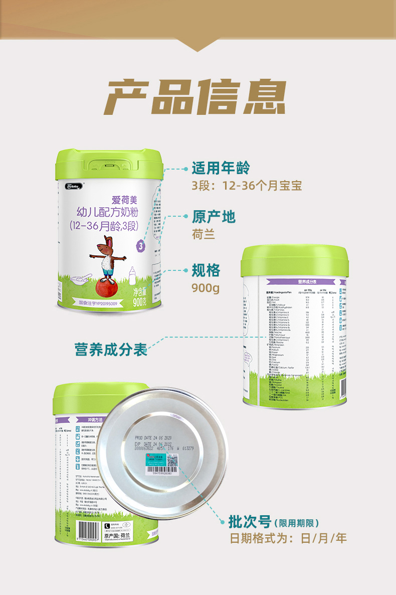 【新装升级】Ekobaby爱荷美荷兰原装进口婴幼儿配方奶粉 3段 12-36个月 ¥368.00 0人关注