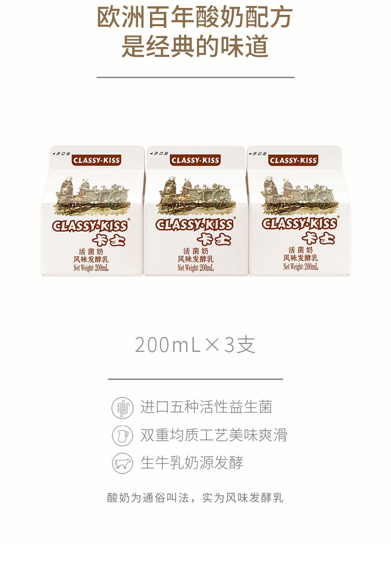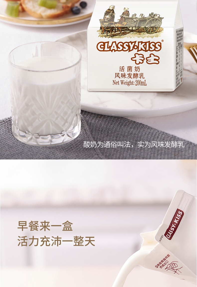 CLASSY.KISS 卡士酸奶 活菌奶 风味发酵乳 生鲜低温奶 5种益生菌 200ml/盒 ¥7.20 0人关注