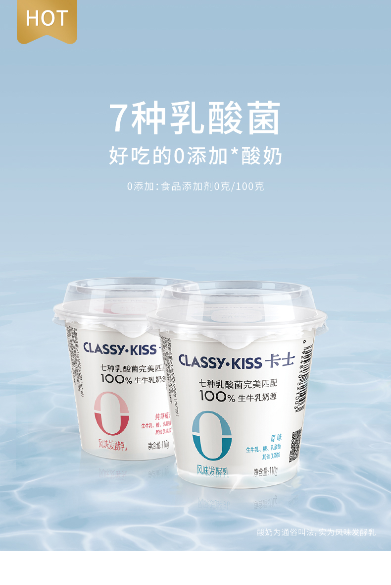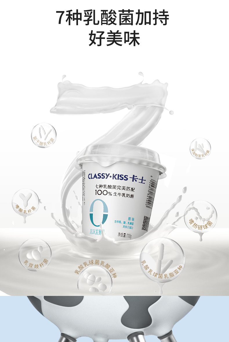 【CLASSY.KISS 卡士】 110g 风味发酵乳 7种乳酸菌 110g/杯 原味-0添加 3杯 ¥13.50 0人关注