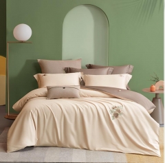 梦洁家纺长绒棉素色绣花套件60S 全棉纯棉纯色床上四件套床单被套