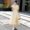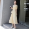 - 连衣裙女夏装2022新款气质方领修身显瘦短袖中长款女士裙子(米黄色)